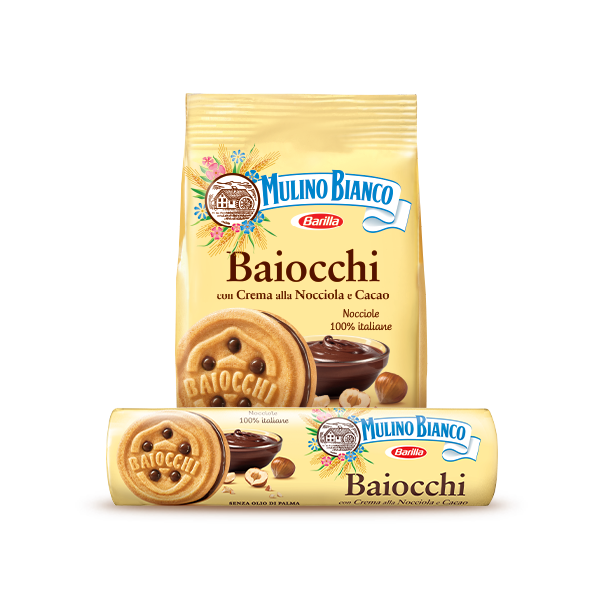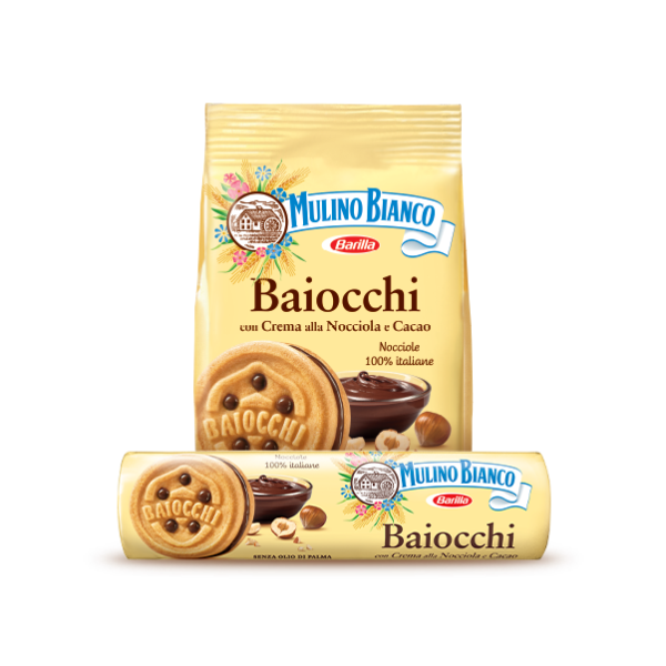 Ingredienti: Farina di frumento, zucchero, olio di girasole, uova fresche, latte scremato in polvere, latte fresco pastorizzato, agenti lievitanti (carbonato acido di ammonio, carbonato acido di sodio, tartrato monopotassico), sale, amido di frumento, aroma. Crema alla nocciola e cacao 26,5%: zucchero, grassi ed oli vegetali (karité, cocco, cacao), nocciole 6,4% sul prodotto finito, cacao 2,7% sul prodotto finito, latte scremato in polvere, amido di frumento, aroma.