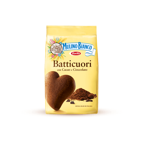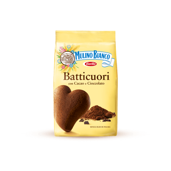 Ingredienti: Farina di frumento, zucchero, olio di girasole, amido di frumento, burro, cacao 3,7%, latte fresco pastorizzato 3,6%, cioccolato 3,1% (zucchero, pasta di cacao, cacao magro, aroma), emulsionante lecitina di soia, aromi, agenti lievitanti (carbonato acido di sodio, difosfato disodico, carbonato acido d’ammonio), sale.